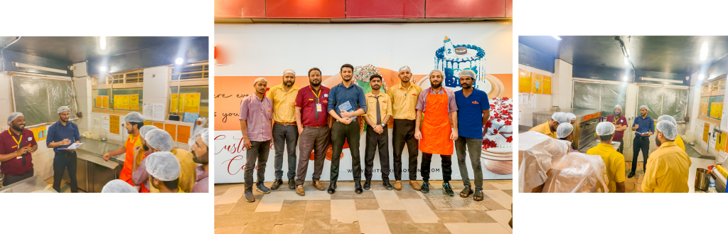 Left Side: Employee of the Month Certificate Distribution Recognizing and celebrating our dedicated team members, Food Tech Solution (FTS) holds monthly “Employee of the Month” ceremonies. These moments highlight the outstanding performance and commitment of our employees to upholding high standards in food safety, quality management, and operational excellence. Certificates are distributed as a token of appreciation, encouraging a culture of motivation and continuous improvement within the organization.